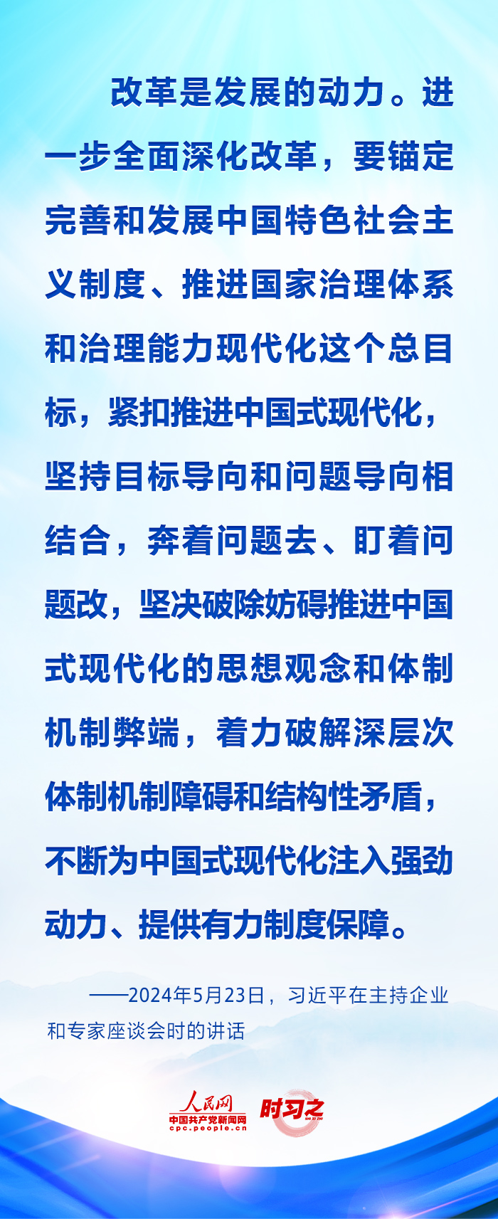 “改革开放是当代中国大踏步赶上时代的重要法宝,是决定中国式现代化成败的关键一招。”党的二十大以来,习近平总书记深刻阐释要把全面深化改革作为推进中国式现代化的根本动力,为在新征程上加快推进中国式现代化指明了方向。