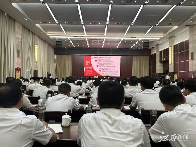 8月19日上午,学习贯彻党的二十届三中全会精神省委宣讲团宣讲报告会在九江市举行。省委宣讲团成员、省委金融办分管日常工作的副主任许忠华作宣讲报告。