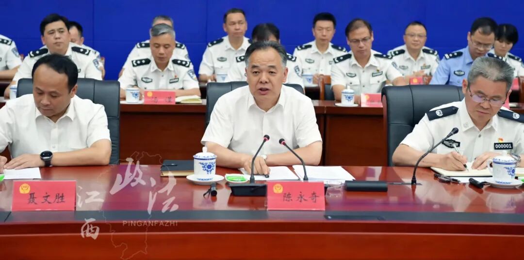 在省公安厅,陈永奇深入了解全省社会面治安、打击治理电诈等情况。他指出,要忠实履行维护国家安全和社会稳定的职责使命,以实际行动坚定拥护“两个确立”、坚决做到“两个维护”。要全面推进公安改革,深化“情报、指挥、行动”一体化运行机制改革,强化科技创新和数字赋能,健全完善打击犯罪新机制,着力提升公安工作现代化水平。要始终坚持全面从严管党治警,持续深化作风建设,确保公安队伍绝对忠诚、绝对纯洁、绝对可靠。