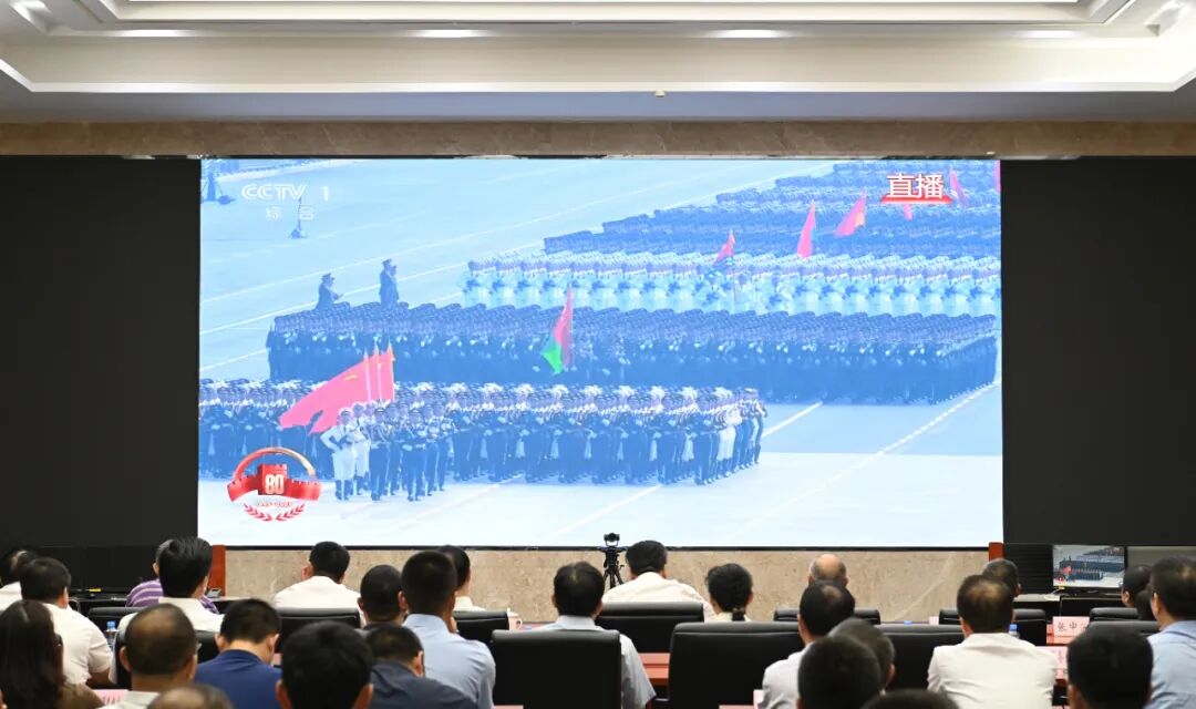 省司法厅在家厅领导及机关全体干部职工在厅指挥中心集体收看这场致敬历史、守护和平的庄严盛典。屏幕里,礼炮响彻云霄,国旗护卫队踏响铿锵正步;徒步方队昂首阔步,尽显英雄气概;装备方队铁甲洪流,彰显大国底气;空中梯队鹰击长空,划出壮丽航迹。