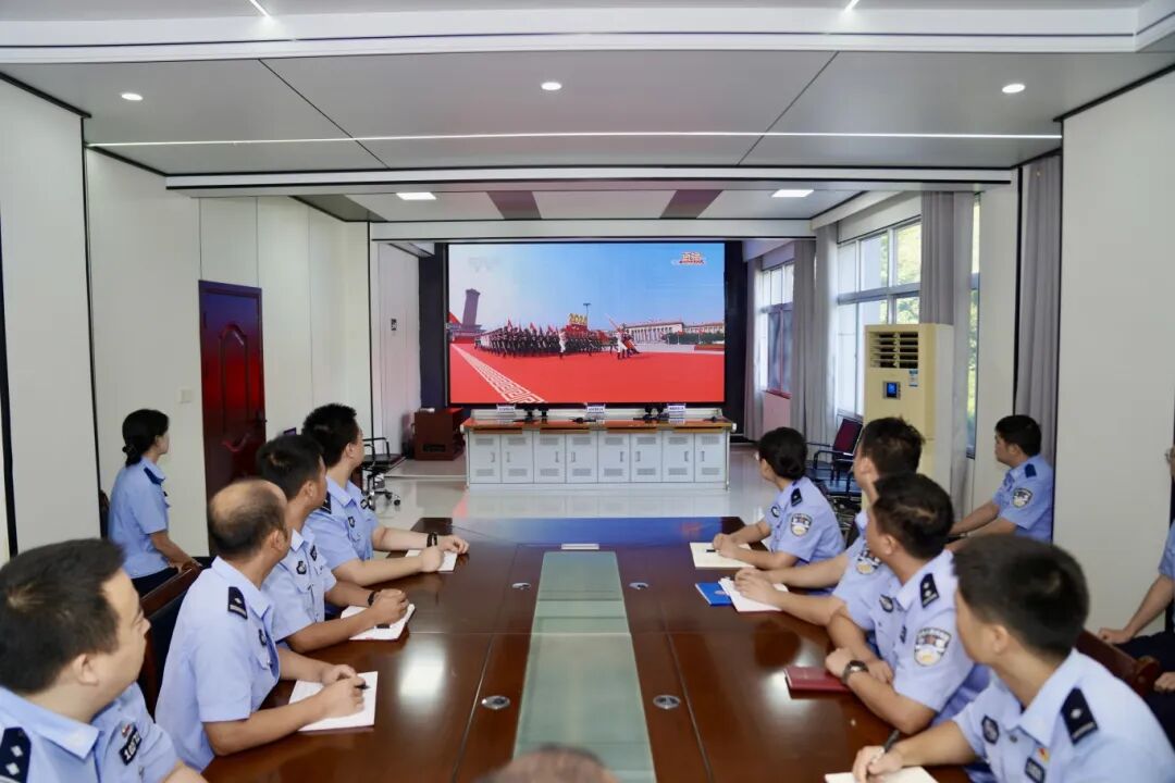 声震寰宇,气壮山河!长安街上,军乐声中,人民军队豪迈受阅。这一刻,江河涌起波澜,山岳为之震颤;这一刻,承载多少记忆,凝聚多少期盼。 全省公安机关组织收听收看了大会盛况,广大公安民警、辅警备受鼓舞。大家一致表示,要认真学习贯彻习近平总书记的重要讲话精神,坚持总体国家安全观,坚持以人民为中心,不断深化公安改革,推进基层治理创新,全神贯注、全力以赴做好防风险、保安全、护稳定、促发展各项工作,奋力推动公安工作现代化,以一流标准、一流工作、一流业绩,全心全意捍卫国家政治安全、维护社会大局稳定、保障人民安宁,不负党和人民的信任与重托。
