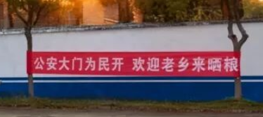 “来来来,这边还有位置!” 民警小跑着引导村民 将一袋袋新收的稻谷摊开晾晒 又是一年丰收时节 欢迎群众来所晒粮 已成为新圩派出所便民服务的惯例