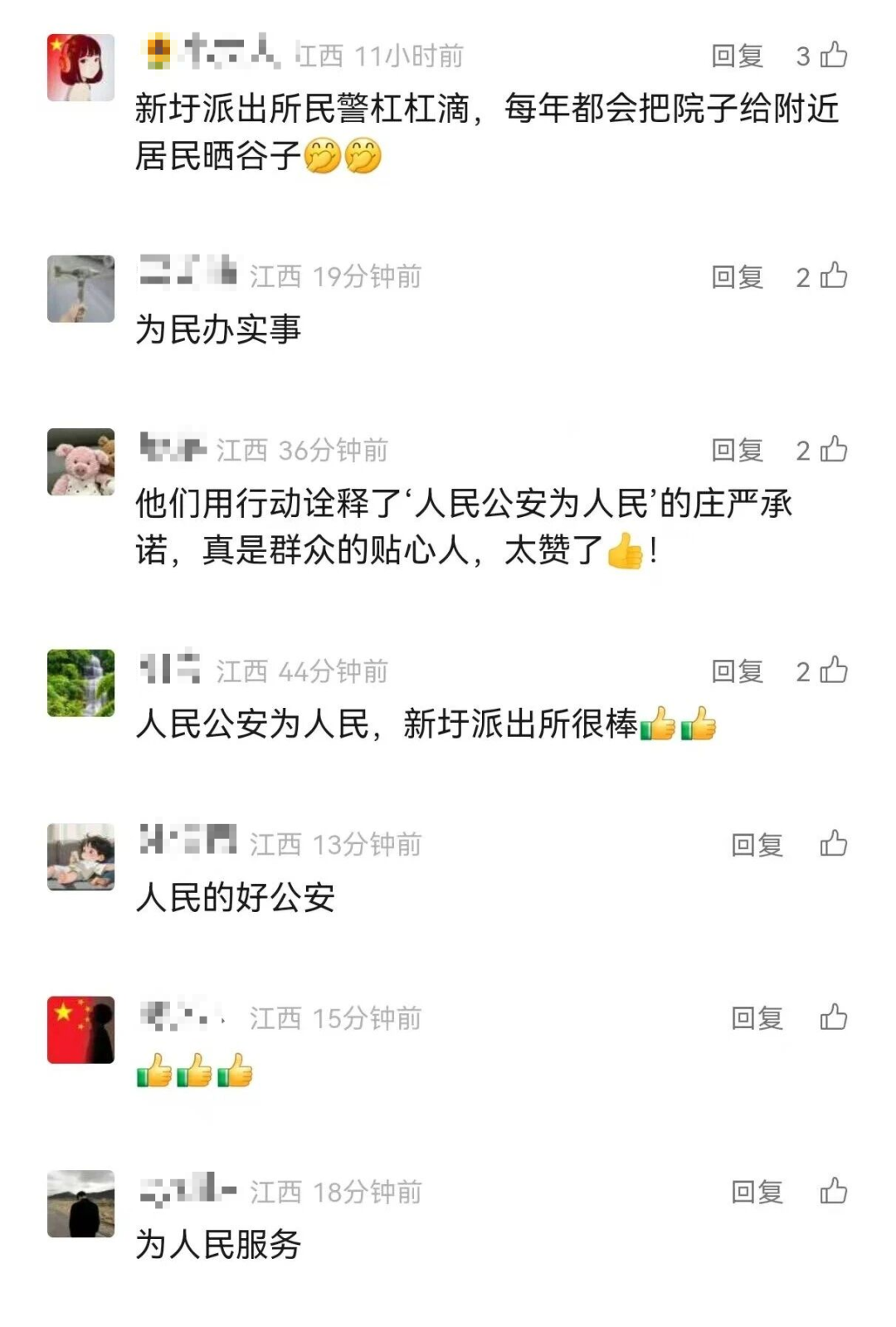 “今年照旧 (派出所)院子留给大家!” 秋收伊始 吉安市公安局青原分局新圩派出所民警们 在走访中就向村民们发出了热情邀请 这条自2022年开启的暖心举措 得到了辖区群众的广泛好评