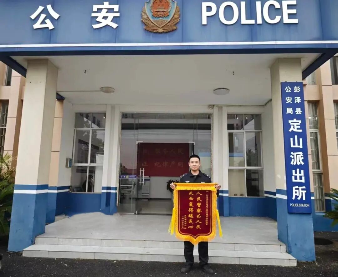 近日 一面来自青岛的锦旗 抵达彭泽县公安局定山派出所 背后是一段跨越千里 为游客寻回手机的暖心故事 而收到锦旗的 正是新警黄翔宇 这是他从警生涯的第一面锦旗 也是这位00后新警的 最暖“入职礼”