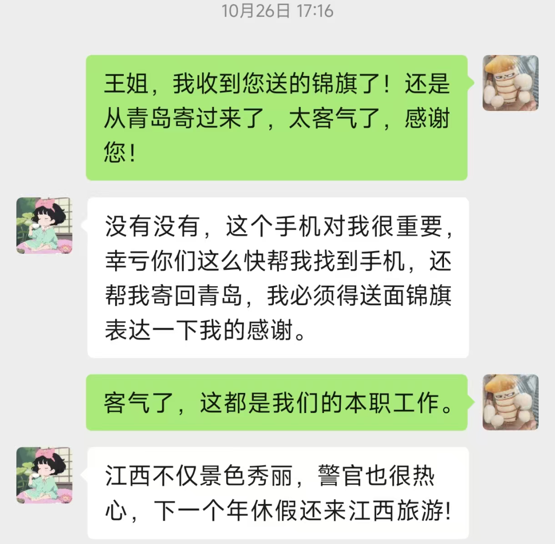 一份跨越山海的"入职礼" 确认无误后 黄翔宇将手机妥善寄回青岛 王女士收到手机 不仅寄来锦旗 还特意发来微信致谢
