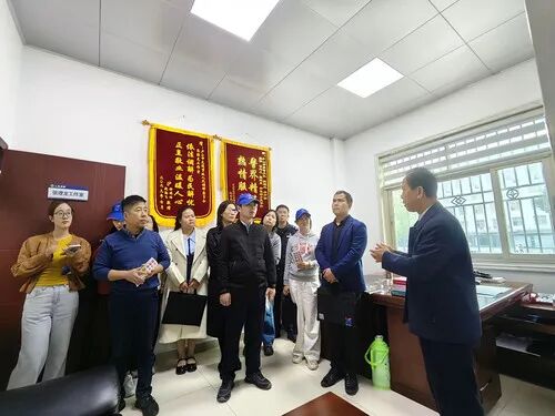 10月23日,采风团转赴九江市浔阳区人民法院东郊人民法庭。在这里,采风团成员驻足观赏法庭浮雕文化墙,参观九江历史文化资源保护法治展馆,深入了解东郊人民法庭以法治护航历史文化遗产保护等工作。 为探索“群防群治+志愿服务”警务协助机制,2017年5月,九江市浔阳区成立浔城志愿者警务协助协会,该模式在全省属于首创。采风团一行深入了解“浔城志警”深耕基层、协助派出所民警开展矛盾纠纷联动联商联调、参与道路交通安全管理、协助公安机关开展夏季治安打击整治统一行动等方面的生动实践与成效。