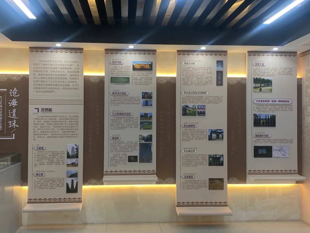 走进位于三楼的展馆,采风团成员立刻被浓厚的文化氛围所吸引。展馆通过丰富的图文、实物及多媒体展示,系统梳理了九江如烟的历史长卷与法治守护的坚实足迹。它不仅展示了锁江楼、浔阳楼等历史遗迹的沧桑,呈现了传统村落、非遗项目的魅力,更从司法视角切入,生动阐释了《中华人民共和国文物保护法》等法律法规,并精选了涉及文化遗产司法保护的典型案例,凸显了司法在守护历史文脉中的重要作用。