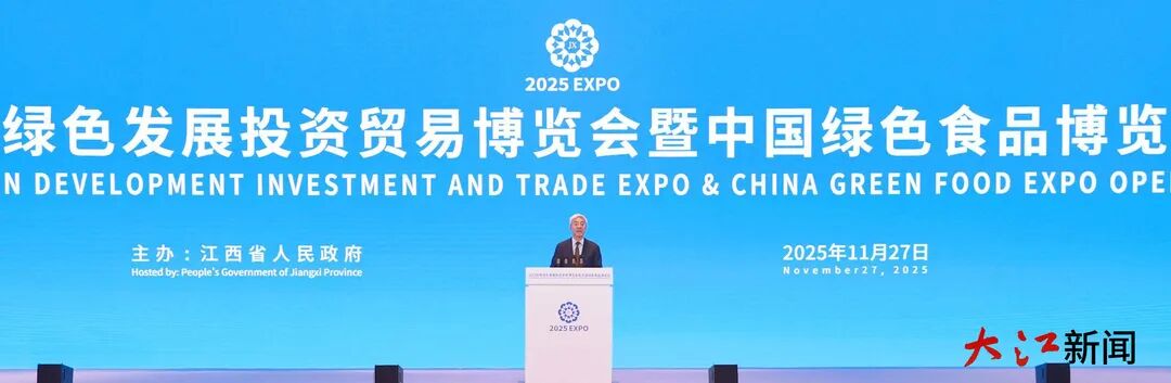 2025世界绿色发展投资贸易博览会暨中国绿色食品博览会开幕 纳卢曼戈致辞 密篇弗里德里希出席 尹弘赵龙李炳军致辞 叶建春主持 11月27日,2025世界绿色发展投资贸易博览会暨中国绿色食品博览会在南昌开幕。大会以“数智赋能绿色发展 开放江西链接全球”为主题,吸引了来自全球68个国家和地区嘉宾参会。