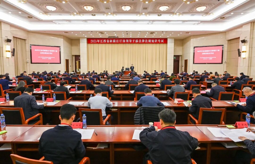 2024年10月—2025年10月期间全省新提任厅级领导干部和2024年未参加新提任厅级领导干部法律法规知识考试的领导干部共114人参加考试。考试内容包括习近平新时代中国特色社会主义思想,党的二十大和二十届二中、三中、四中全会精神,习近平法治思想,中央全面依法治国工作会议精神,中办、国办印发的《关于建立领导干部应知应会党内法规和国家法律清单制度的意见》,《中共江西省委办公厅 江西省人民政府办公厅关于建立领导干部应知应会党内法规和国家法律清单制度的通知》,以及宪法、民法典、法治宣传教育法、统计法等。
