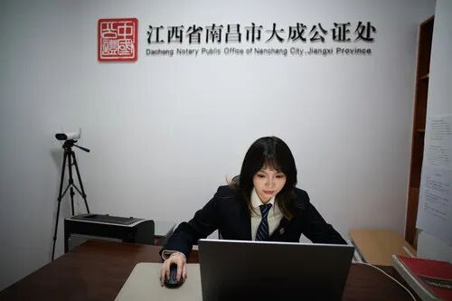 2月25日,正月初九,春节长假的余温渐渐消散,公证处大厅里也渐渐热闹起来。一对中年夫妻正凑在圆桌旁,低声商量着房产公证和每月还贷的细节。伴随着细碎而充满烟火气的交谈声,记者在这里见证了一场跨越空间的线上公证。 公证服务加速度 10时许,是一场线上预约公证开始的时间。年轻公证员穿着公证制服准时出现,穿过大厅,推开小屋的磨砂玻璃门,在深栗色的办公桌前坐下。“今天是2026年2月25日,我是江西省南昌市大成公证处公证员万天真。”电脑屏幕亮起来,网络另一头是委托人杨女士(化名)。