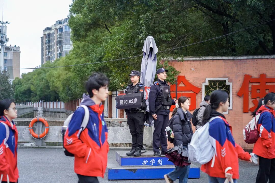 寒风细雨中,鹰潭月湖区的护学身影依旧坚定。辅警任小青与学生击掌互动,俯身让孩子为自己系上红领巾,温馨画面驱散了寒意。当地公安机关严格落实护学高峰勤务机制,科学部署“警服蓝”的执勤守护、“荧光绿”交通指挥及“志愿红”的热情服务,明确高峰时段值守要求,细化人流管控、交通疏导等措施,在校园门口及周边重点路段形成严密防控态势,让师生和家长倍感安心。