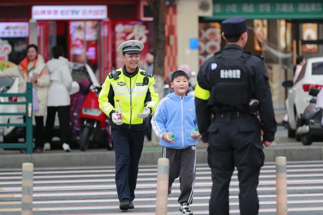 在全省各地的护学岗上,多方力量正协同发力、闭环联动。九江公安牵头整合交警、派出所民辅警、家长志愿者、“九江志警”及值日老师力量,健全“警校家社”四方联动护学机制,明确各主体职责分工,细化交通疏导、人流管控、周边巡查等工作流程,确保衔接顺畅、响应高效。斑马线前,交警采取“定点疏导+流动管控”模式,引导车辆减速礼让、有序通行;校门口,家长志愿者配合民辅警开展车辆分流,严格落实“即停即走”管控要求,缓解校门口交通拥堵;周边路段,“九江志警”协助开展常态化巡逻,及时排查各类安全隐患,以多方合力织密校园周边安全防护网。