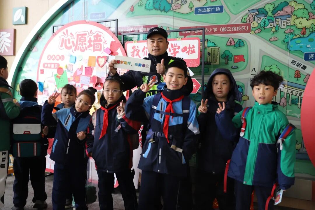 抚州的护学岗上,更有“警爸警妈”的特殊守护。连续三年参与护学的民警蒋敏昕,带着孩子提前半小时到岗,逐一检查校园门口防冲撞护栏、应急装备等设施,细致排查安全隐患后,及时向派出所上报排查情况,整套流程规范严谨、一丝不苟。“穿上这身警服,守护的不只是自己的孩子,更是这座城市的未来。”看着孩子们平安入校的背影,他的话语温暖而有力量。在抚州,全市公安机关深化“警、校、家、社”四位一体护学模式,组织“警爸警妈”辅警队伍就近参与护学执勤,同步建立护学执勤台账,实现“护学值守”与“亲子接送”有机结合,既筑牢校园安全防线,也彰显公安服务温度。